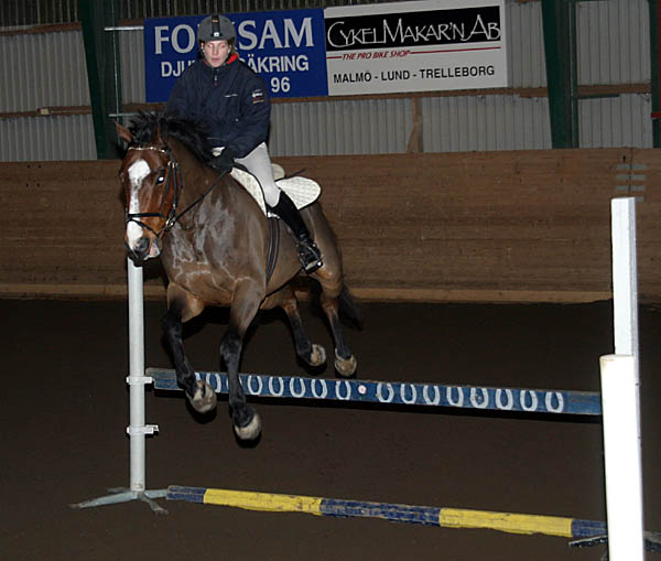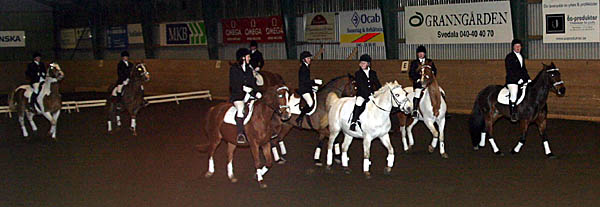 ![]() Lagtävling i hoppning på tid. Gymnasisterna mot ponnyryttare. Ponnylaget vann. |