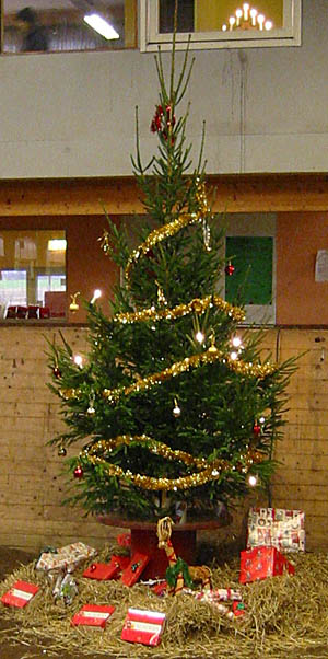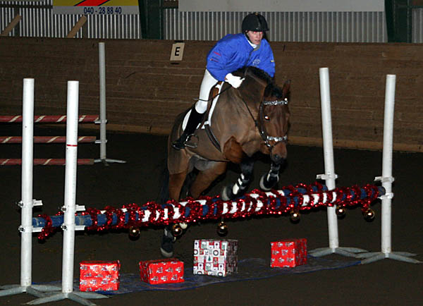 | Ungdomssektionen ordnade en fantastisk Lucia-show med dressyr, hopptävling, spex, lotterier, jultomte med godispresenter och naturligtvis ett Lucia-tåg. Det var trångt på läktarna på grund av en stor publik som lät sig väl smaka av glögg, lussekatter och applåderade entusiastiskt - till vissa hästars förskräckelse. | |||
