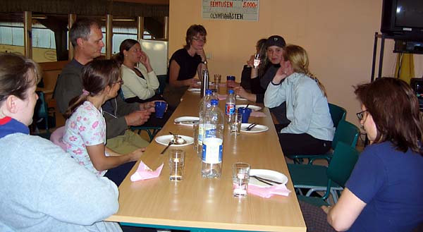 | Runt bordet: Pia, Eva, Thomas, Camilla, Eva, Solveig, Petra, Ingela och Carina |