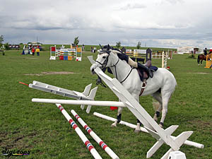 "De var så dax att hoppa nu och här är ju massa bommar ivägen" Ryttaren: "Oj, låt mig också titta" |