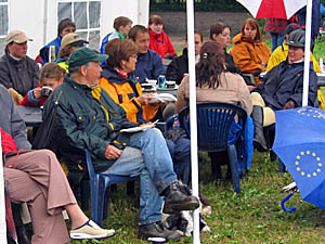 | Stefan Ohrås med Lukas | Publik under tälttak (Owe bl a) |