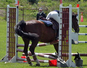 "De var så dax att hoppa nu och här är ju massa bommar ivägen" Ryttaren: "Oj, låt mig också titta" |