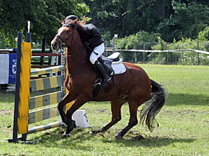 | Nä-ä ! Jag hoppar inte över det där, inte för alla havreflarn i världen. |
